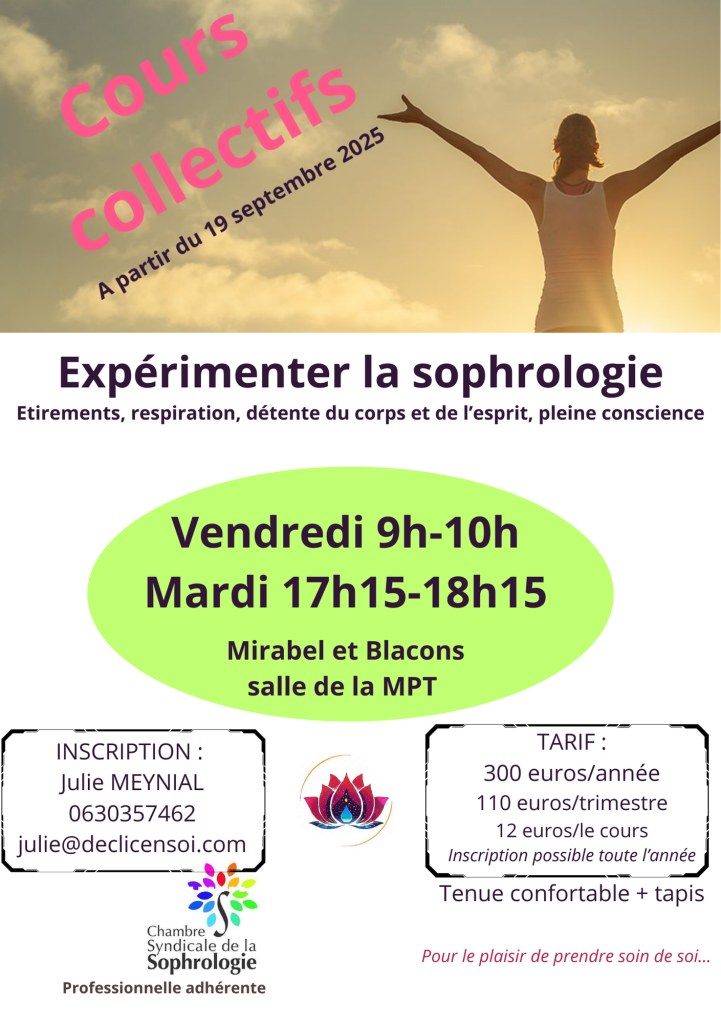 Assis(e), debout ou couché(e), je transmets les outils et la philosophie de vie de la sophrologie.